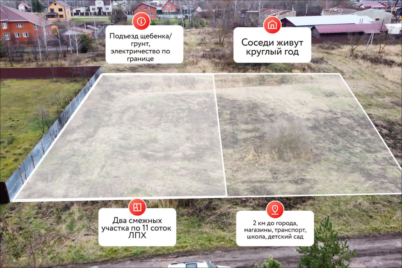 Площадь каждого - 11 соток позволяет разместить основной дом, гараж и необходимые хозяйственные постройки, такие как баня или теплица.