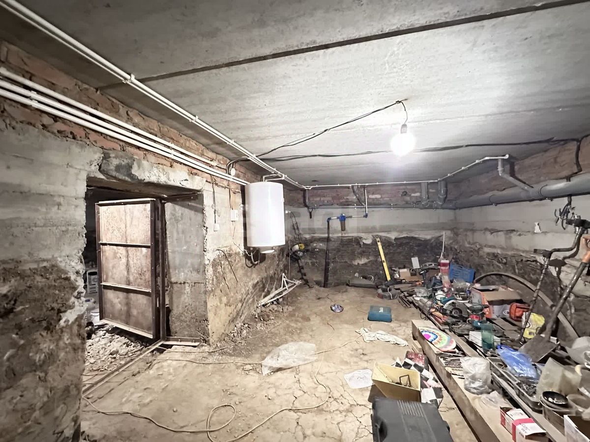 Фундамент ленточный - глубина цокольного этажа 2.2 метра. Стены дома - кирпич ( 2.